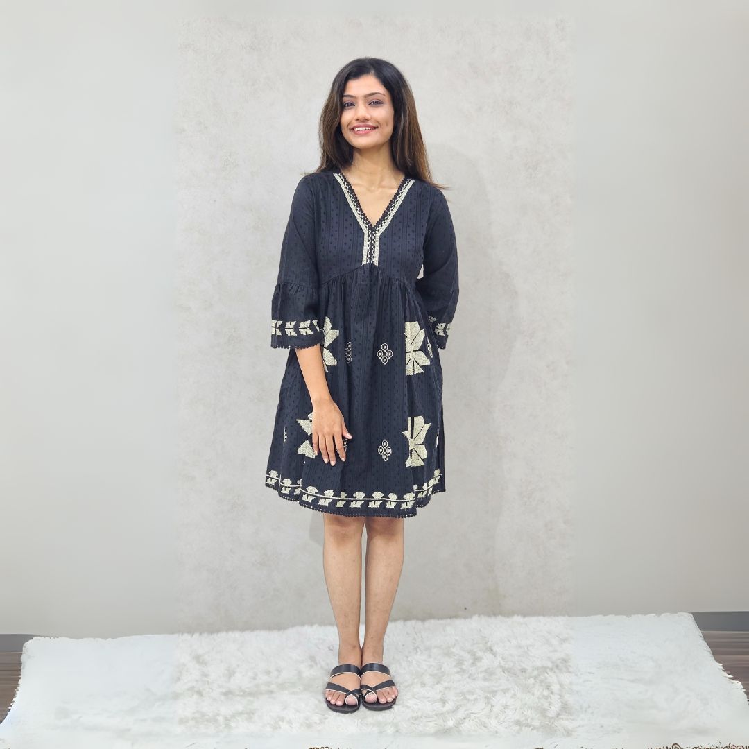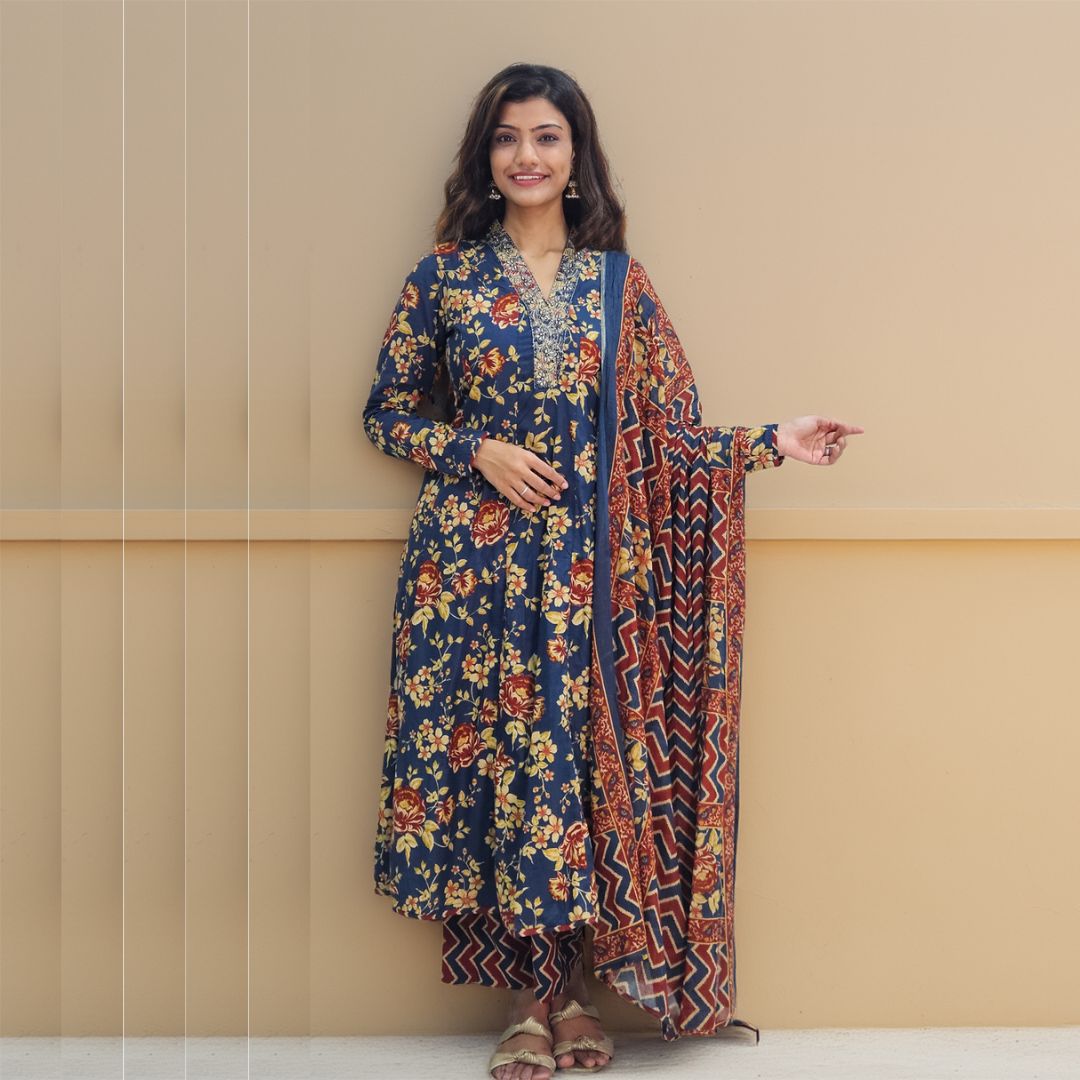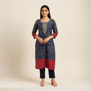 Navy Blue Embroidered Muslin Kurti