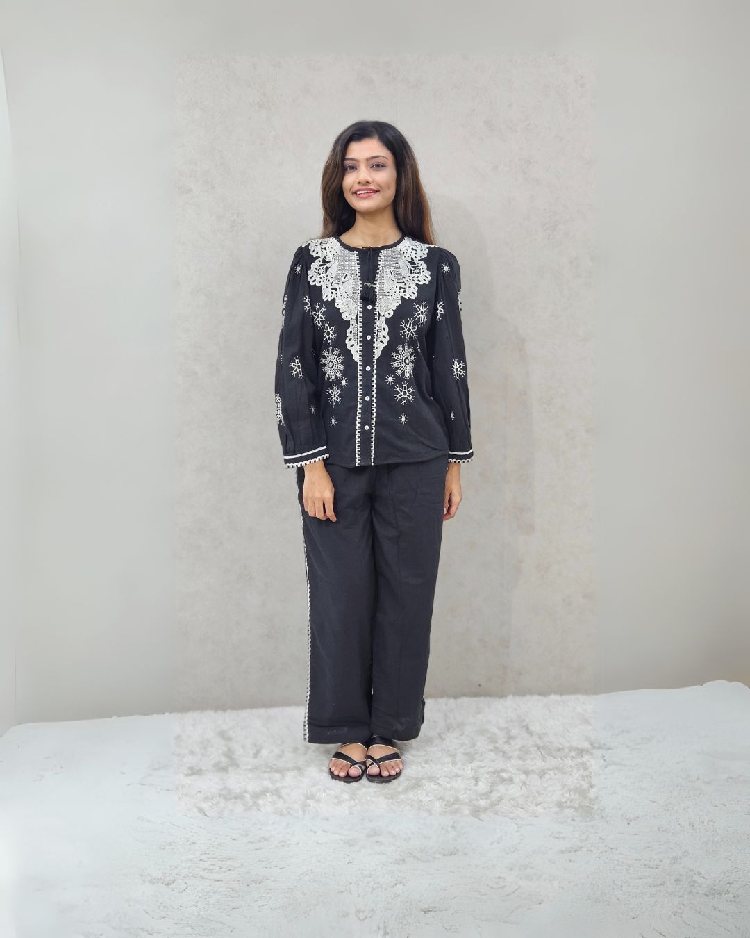 Black Foil Printed Cotton Kurta Set